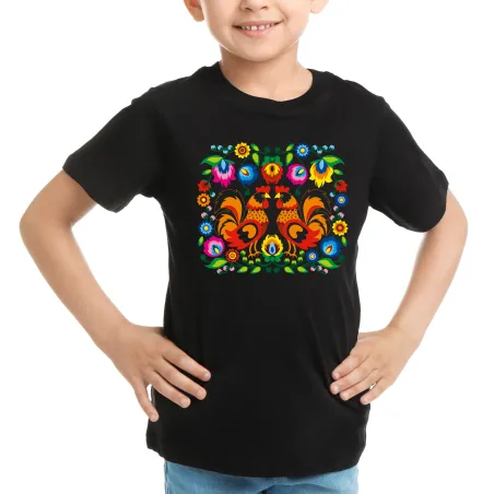 Koszulka z nadrukiem "Folklor Łowicki Koguty brązowe"