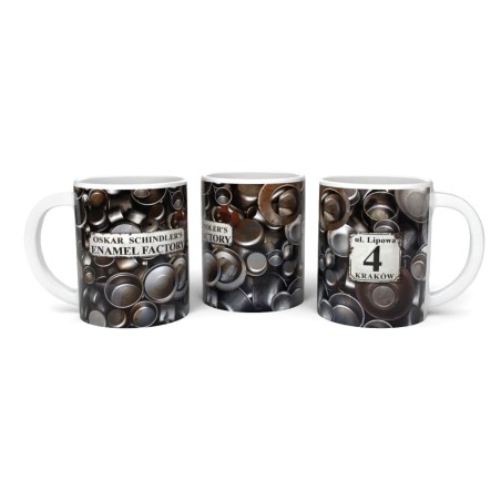 Ten kubek pamiątkowy inspirowany jest historią Fabryki Emalii Oskara Schindlera, jednego z najważniejszych miejsc pamięci w Krakowie. Wzór bezpośrednio nawiązuje do industrialnego charakteru dawnej fabryki oraz jej autentycznego adresu ul. Lipowa 4.