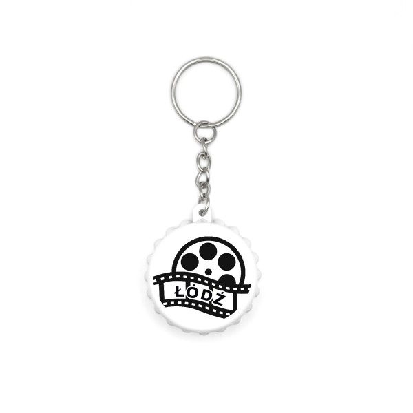 Brelok „Łódź Taśma Filmowa” w formie kapsla to nowoczesna pamiątka z Łodzi, inspirowana filmowym charakterem miasta i jego silnymi związkami z kinematografią.