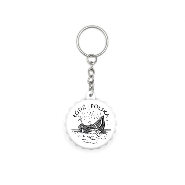 Brelok „Łódź Herb 1915” w formie kapsla to wyjątkowa pamiątka z Łodzi, inspirowana historycznym symbolem miasta. Klasyczna grafika nawiązująca do dawnego herbu podkreśla tradycję i tożsamość Łodzi.